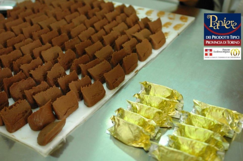 Traditional "Gianduiotti" totally made and wrapped by hand, chocolates, fruit jellies, Easter eggs decorated by hand, chocolate creams as well as a wide range of dark, white and milk chocolate bars including violet, wildberries, mint and cinnamon flavour purchasable in the store or at some local fairs.