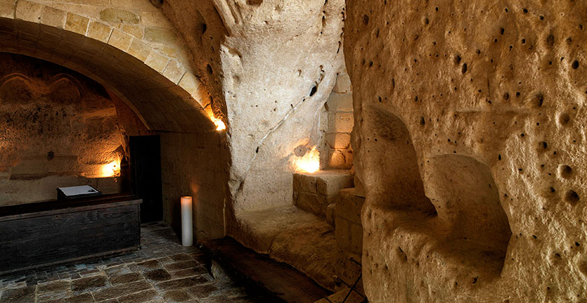 A rich breakfast with local products coming from an organic farm is served in a former rock church of the 13th century, where, by reservation at least one day in advance, you can enjoy the unique experience of a romantic candle-lit dinner with a background of classical music.