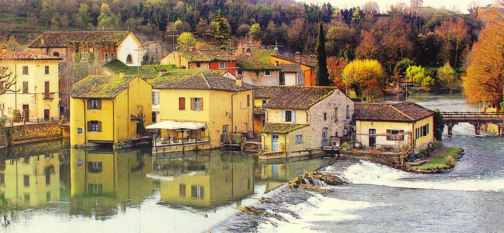 Il Borghetto est un ensamble de maisons de charme situées dans des anciens moulins de 1400 restaurés avec goût et élégance dans le village le plus beau d'Italie sur la rivière Mincio, à quelques kilomètres du lac de Garde et de la route du vin Custoza.